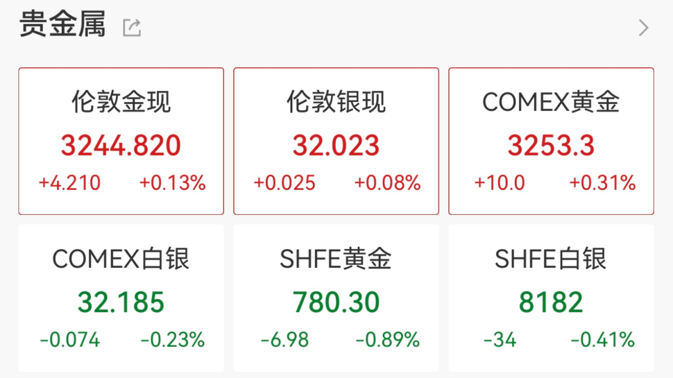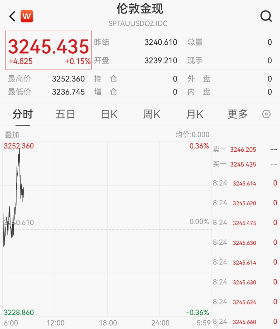 现货黄金向上触及3250美元