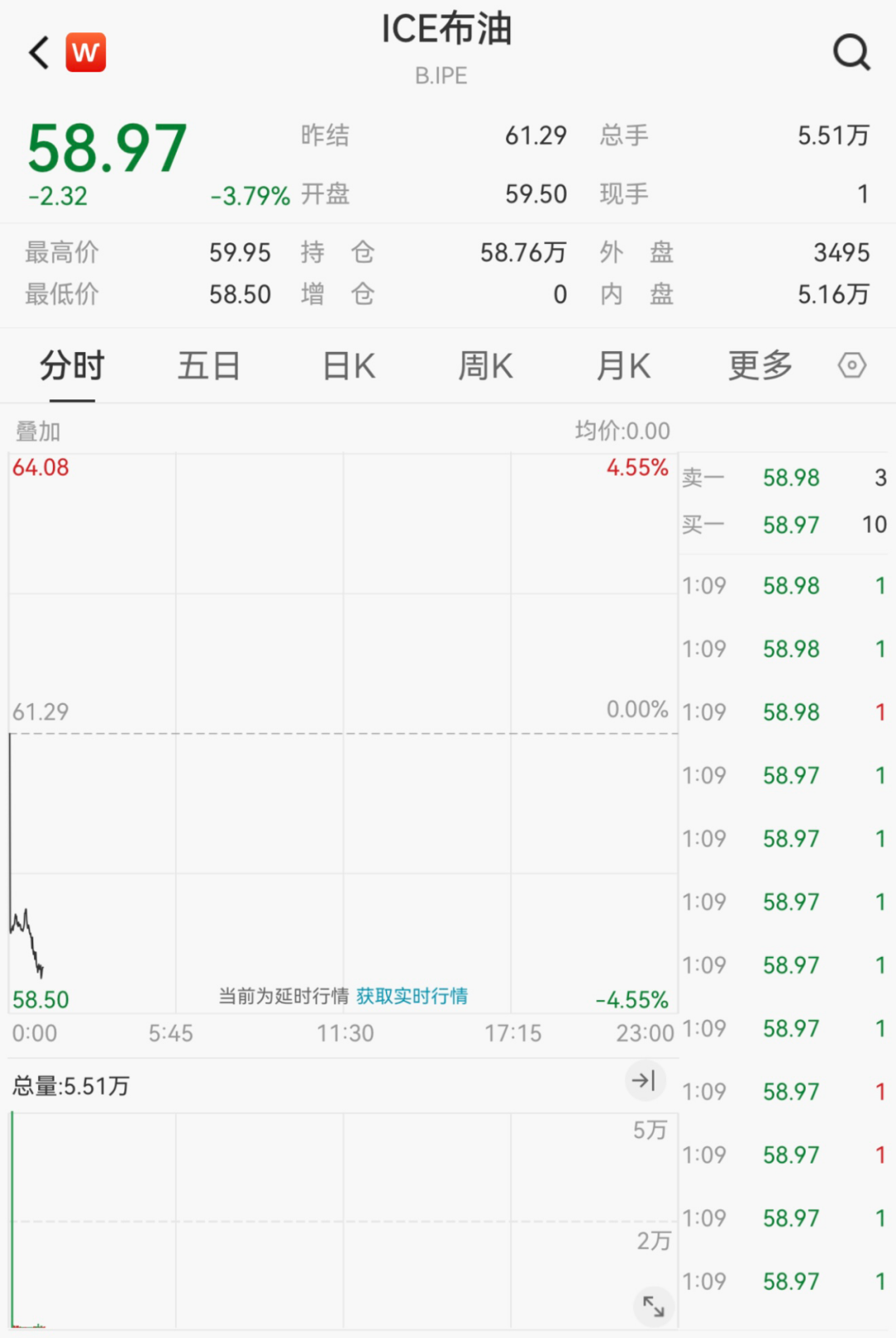截至发稿,布伦特原油跌3.79%,报58.97美元/桶。